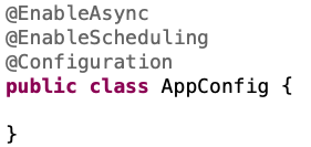 ๋ฌผ๋ก , @Async ๊ฐ ์ ์ฉ๋๋ ค๋ฉด @Configuration์ @EnableAsync๋ ์ถ๊ฐํด์ค์ผ ํฉ๋๋ค.