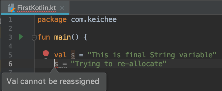 ์ฝํ๋ฆฐ์์๋ val์ read-only variable๋ก ์ค๋ช ์ ํ๋ค.
