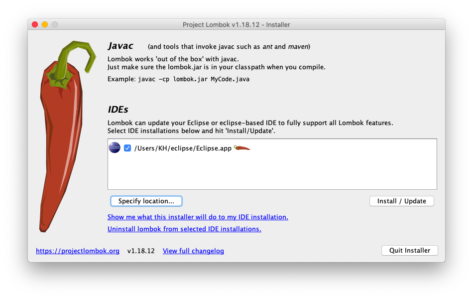How to install lombok plugin on Eclipse IDE