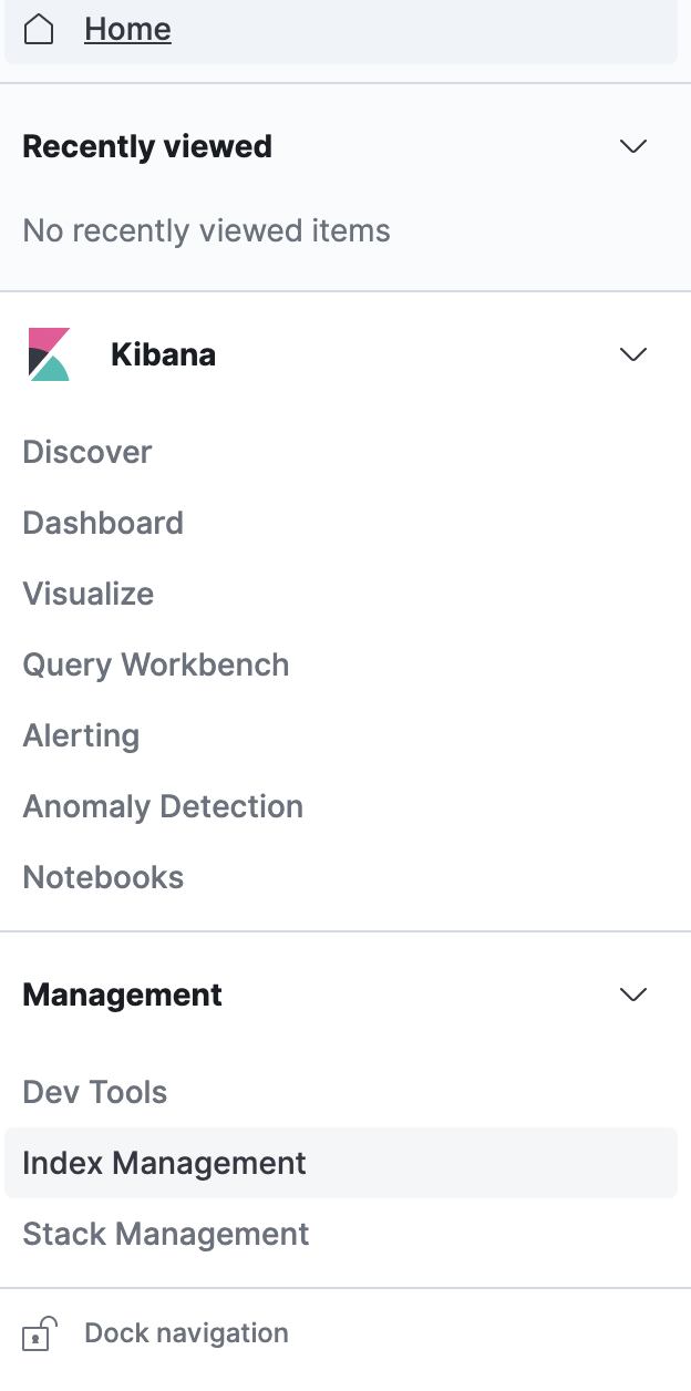 ์ฌ๊ธฐ์ Index Management ๋ฉ๋ด๋ฅผ ์ ํํ์ฌ ๋ค์ด๊ฐ๋๋ค.