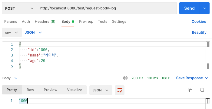 2022-09-16 10:04:39.588 INFO 57590 --- [nio-8080-exec-2] c.k.demo.filter.RequestLoggingFilter : REQ: POST /test/request-body-log, client=0:0:0:0:0:0:0:1, payload={